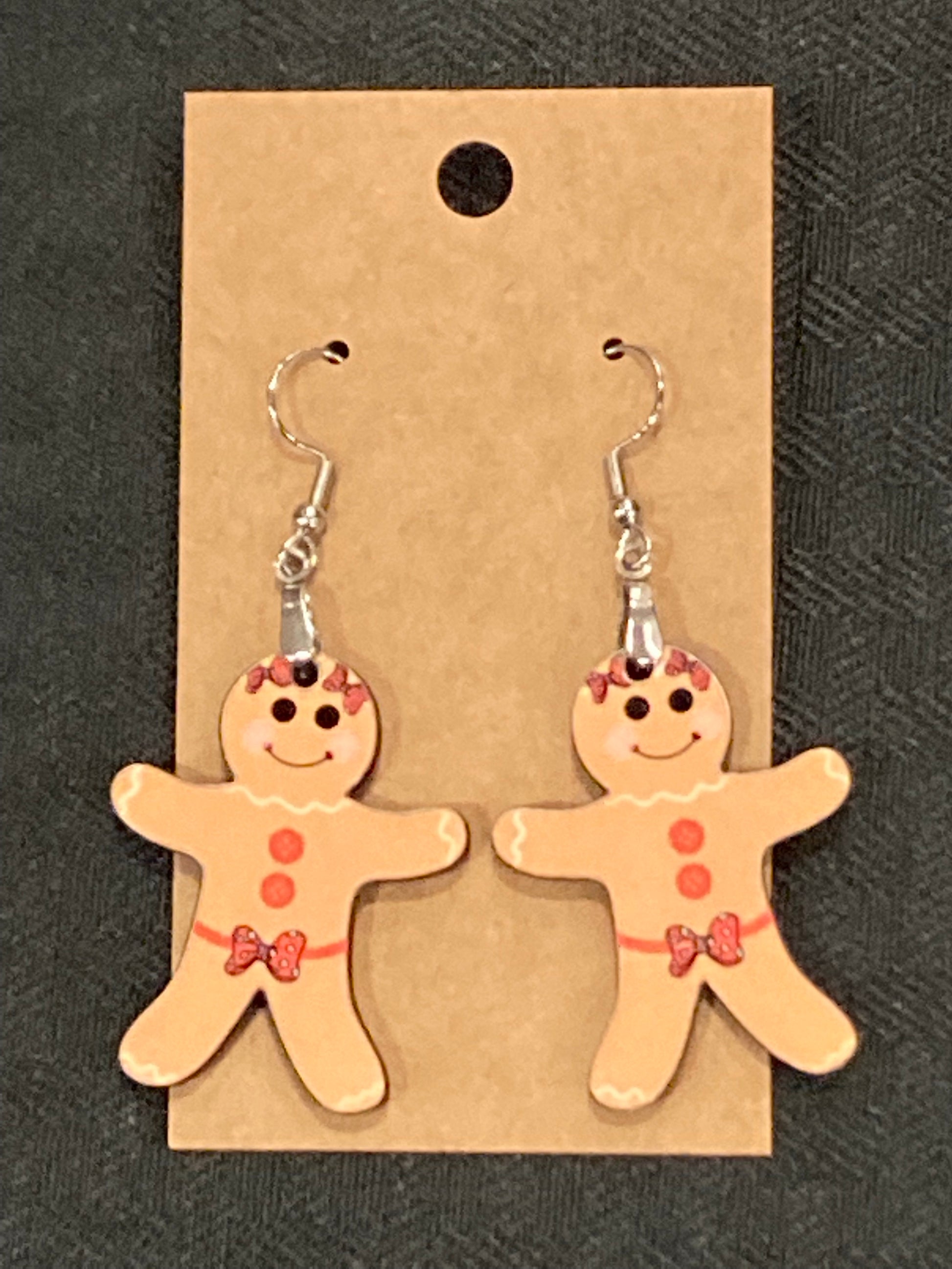 Gingerbread Girl Pink Gingerbread Earrings with silver earring hardware