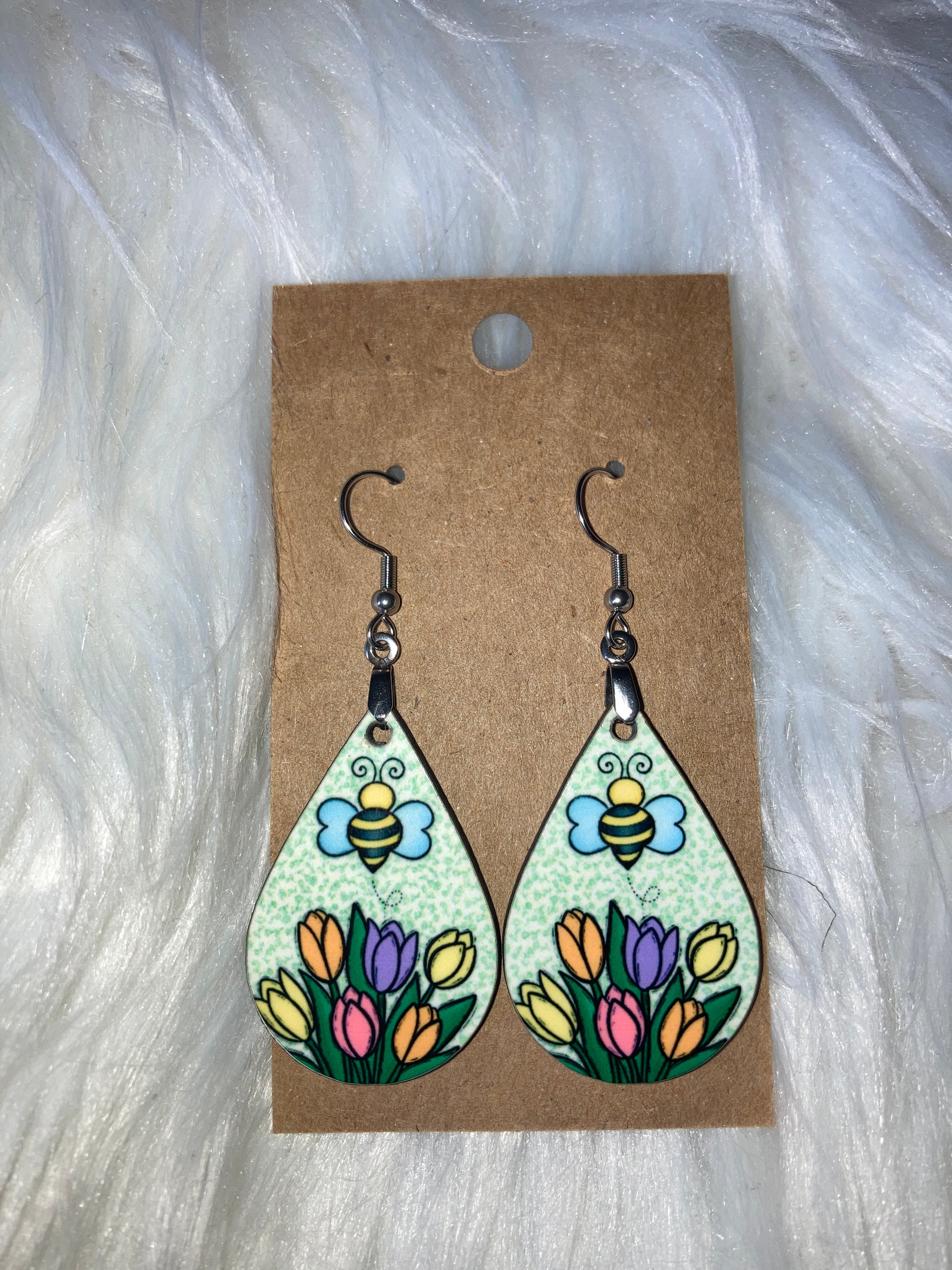 Tulips and Bee (TD59) Tear Drop Earrings